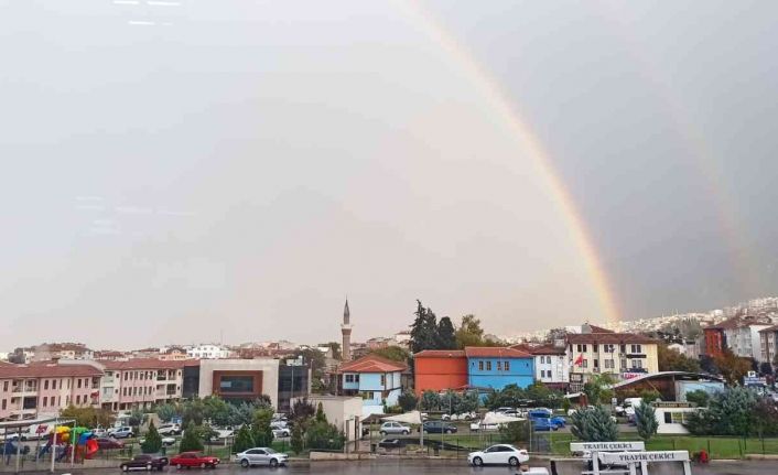 Akşam saatlerinde birden bastıran yağmur sonrası oluşan gökkuşağının görüntüsü, izleyenleri mest etti. Yağan yağmurun ardından açan gökkuşağı vatandaşlara büyük bir görsel şölen yaşattı. Gökkuşağını gören vatandaşlar cep telefonlarına sarılarak bu ânı ölümsüzleştirdi.