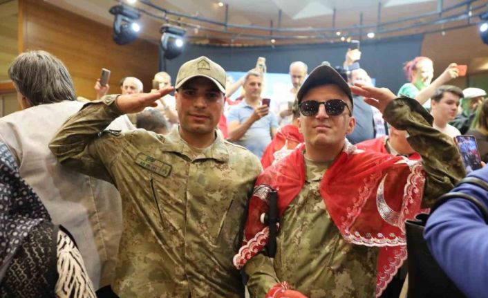 Dev Türk bayrağı açarak salona giren asker adayları, bando eşliğinde marşlarla yürüyüş yaptı. Engelli genç kızların kına tepsilerini taşıdığı yürüyüş, Türk bayrağının dalgalandırılmasıyla sona erdi. Saygı duruşu ve İstiklal Marşı’nın okunduğu programda protokol üyeleri, gençlerin eline kına yaktı. Duygusal anlar yaşayan aileler, asker kıyafeti içerisindeki çocuklarıyla bol bol hatıra fotoğrafı çektirdi. Hem üniforma giymenin heyecanını yaşayan hem de Büyükşehir Belediyesi orkestrası eşliğinde doyasıya eğlenen asker adayları, Türk bayrağı işlemeli yazmaları omuzlarına takarak aileleriyle unutamayacakları bir akşam yaşadı.