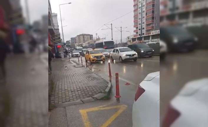Bursa’da geri geri ilerleyen taksi sürücüsü tehlike saçtı o anlar cep telefonu kamerasıyla kaydedildi.