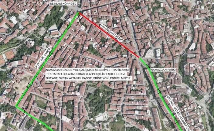 "Yıldırım İlçesi Namazgah Caddesinde 6 noktada yol kaplamasında meydana gelen bozulmalar sebebiyle asfalt onarım çalışmaları yapılacaktır. Çalışma sebebiyle 5 Mart Perşembe günü 08.00-15.30 saatleri arasında trafik akışı tek taraflı olarak sırasıyla İpekçilik, Eşrefiler ve Şehit Asteğmen Okşan Altanay Caddelerine yönlendirilecektir. Sürücülerin ve yayaların trafik işaret ve işaretçilerine uymaları ve belirtilen alternatif güzergahları kullanmaları gerekmektedir."