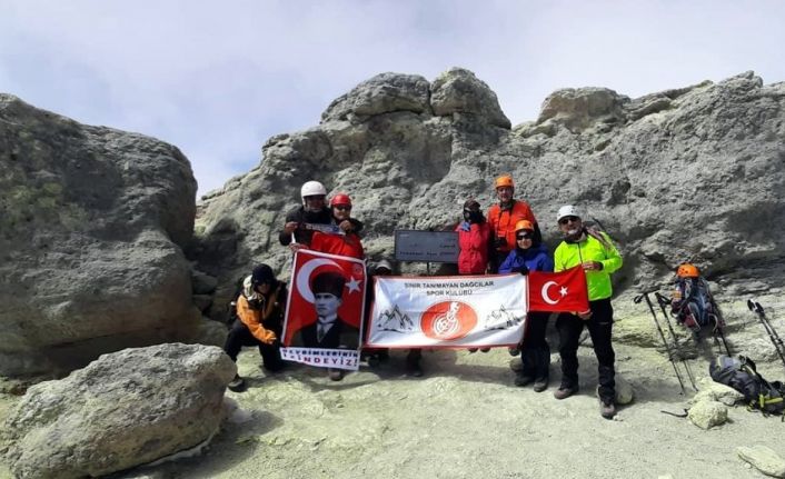 Bursalı dağcılar, İran’da bulunan 5 bin 610 metre yüksekliğindeki Demavent dağına tırmandı. Zirvede Türk bayrağı ve Gazi Mustafa Kemal Atatürk’ün posteri açtı.