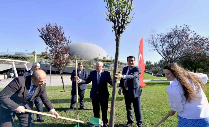 Bursa’nın fetih gününün panoramik olarak anlatıldığı Panorama 1326 Bursa Fetih Müzesi’nin şehrin yeni tarih ve turizm merkezlerinden biri olduğunun altını çizen Başkan Dündar, “2019 yılından itibaren iki yıllık pandemi sürecine rağmen 36 farklı ülkeden 1,5 milyondan fazla ziyaretçiyi müzemizde ağırladık. Lahn Dill Kreis Belediyesi ile kardeşliğimizin 10. yılı anısına müzemizin bahçesine Bursa’mızın sembollerinden erguvan ağacı dikiyoruz. Erguvan, Bursa ve İstanbul’da yüzyıllardır yaygın olarak yaşayan bir ağaç. Osmanlı Sultanı Yıldırım Bayezid’in damadı Anadolu erenlerinden Emir Sultan Hazretleri, her yıl erguvan mevsiminde Bursa’da müritleriyle buluşarak şehirde bir bayram, festival havası yaşanırmış. 14. yüzyıldan itibaren her yıl Nisan ayında Anadolu’nun dört bir yanından alimler, dervişler Bursa’ya gelmiş. 1855 yılındaki büyük deprem ile birlikte bu festival unutulmuş. Bu geleneği yeniden canlandırmak adına üç yıldır Erguvan Bayramı adı altında fidan dikimi çalışmaları yapıyoruz. İlk yıl 250 fidan dikimiyle başladık, bir sonraki yıl 650 ve geçtiğimiz yıl da 750 adet erguvan fidanını Osmangazi’de toprakla buluşturduk. İlçemizdeki tüm parklarda erguvan ağacını ve Bursa’mızın sembolü olan doğu çınarını dikiyoruz. Bu ata tohumlarını Ekolojik Yaşam Merkezimizde geliştirip üretiyoruz. Kardeşliğimiz, 10 yıllık süreçte olduğu gibi çok daha uzun soluklu olsun, ileriye doğru köklü adımlar ve ortak projelerle ile devam etsin inşallah” diye konuştu.