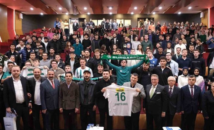 Bursaspor Başkanı Enes Çelik, futbolcular Ahmet İlhan Özek ve Muhammet Demir ile birlikte Mudanya Üniversitesine konuk olarak öğrencilerle keyifli bir söyleşi gerçekleştirdi.