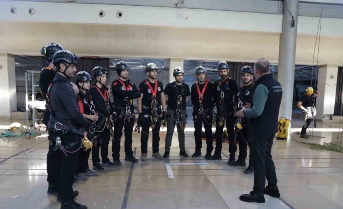 Bursa Büyükşehir Belediyesi, afetlere dirençli kent vizyonu doğrultusunda, BAM başta olmak üzere tüm ilgili birimlerin eğitim ve hazırlık faaliyetlerini aralıksız sürdürmeye devam ediyor. Merinos Yerleşkesi Fuaye Alanı’nda ‘İple Kurtarma Sistemleri ve Arama-Kurtarma eğitimi’ alan ekipler, uzman eğitmenler eşliğinde tavana asılı halatlara güvenlik ekipmanlarını kullanarak tırmandı. Yüksekten erişim, dar alanlara giriş, dikey kurtarma ve zorlu şartlarda güvenli müdahale kabiliyetlerinin geliştirilmesinin amaçlandığı eğitimde, teorik ve pratik bilgiler verildi. Eğitimde, personelin kişisel güvenliği, ekipman kullanımı, düğüm teknikleri, ip sistemleri ve koordineli kurtarma senaryoları uygulandı.