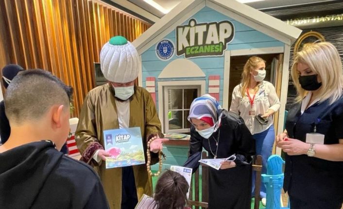 Bursa Büyükşehir Belediyesi, ‘Türkiye’de bir ilk olarak’ geçen yıl Bursa Şehir Hastanesi’nde başlattığı Kitap Eczanesi uygulamasına “Kütüphaneler haftasına” istinaden Bursa Özel Hayat Hastanesi de katıldı. Muayeneye gelen çocukların reçetesine kitap yazılırken; hastane içerisinde ki eczaneye gelen çocuklar, kendi yaş gurubuna uygun olan kitapları Nasrettin Hoca’dan aldı.
