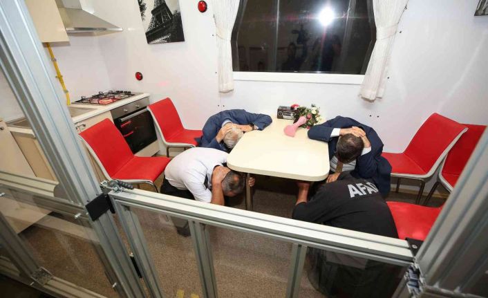 Nilüfer Belediye Başkanı Turgay Erdem, Nilüfer İlçe Kaymakamı Mustafa Özarslan, Nilüfer İlçe Jandarma Komutanı Erdal Aktaş ve Bursa AFAD İl Müdürü Yalçın Mumcu, deprem simülasyon odasında 6.5 büyüklüğündeki depremin deneyimini yaşayarak, hayat üçgeni yaptılar. Özarslan, merkezde yer alan eğitim ve seminer salonları, afet yönetim toplantı odası, arama kurtarma ofisi ve sığınağı da yerinde gördü.