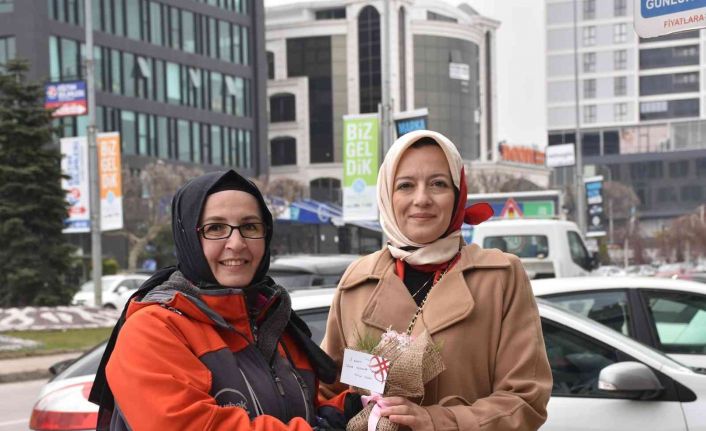 Erkek iş gücü olarak tanımlanan meslek gruplarında istihdam edilen kadın çalışanların da önemli görevler üstlendiğini söyleyen Hayat Hastanesi Yönetim Kurulu Başkan Yardımcısı Betül Kabalar, otopark görevlileri Çiğdem Öztürk, Nurten Kaplan, Fatma Yıldırım, Senanil Işıkçı, benzin istasyonu görevlisi Necmiye Lortoğlu ve otobüs şoförleri Ayşen Acar ve Tülay Balcıoğlu’nu görev yerlerinde ziyaret ederek çiçek ve hediye takdim etti.