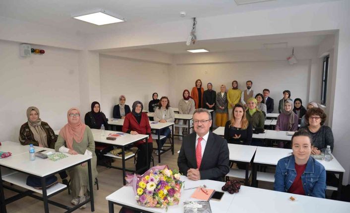 BUÜ Rektörü Prof. Dr. Ahmet Saim Kılavuz, Güzel Sanatlar Fakültesi Geleneksel Türk Sanatlar Bölümü’nün ilk dersine konuk oldu. Yeni dönemin ve ilk dersin herkese hayırlı olması temennisinde bulunan Rektör Prof. Dr. Ahmet Saim Kılavuz; “İnşallah bu hayırlı teşebbüs, mezunlarını verdikten sonra ülkenin sanat hayatına önemli katkılar sunar. Buradan yetişecek arkadaşlarımızın geleneksel Türk sanatlarının geliştirilmesi konusunda kıymetli katkılar yapacağına gönülden inanıyorum. Yani biz eğer eğitim-öğretim konusunda iyi sonuçlar almak istiyorsak mutlaka gayret göstermemiz gerekiyor. Bu alanda bizler de üzerimize düşen görevleri en iyi şekilde yerine getirmeye çalışıyoruz. Akademisyenlerimizin de öğrencilerimizin de bu konuda gayretli olması için onları teşvik ediyoruz. Ülkemizin kalkınması, gelişmesi ve kültür seviyesini arttırması için eğitimden daha kıymetli bir yol yoktur” açıklamasında bulundu.