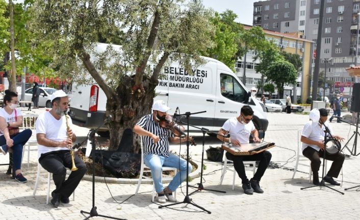 Korona virüs sebebiyle aylardır evde oturan ve iki haftadır pazar günleri belirli saat aralıklarında sokağa çıkan 65 yaş üstü vatandaşlar için Gemlik Belediyesi mini konser düzenledi.