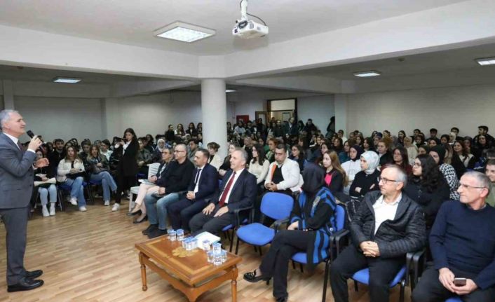 İnegöl Meslek Yüksek Okulu Müdürü Prof. Dr. Hikmet Sami Yıldırımhan’ın açılış konuşmasıyla başlayan buluşmada, Başkan Alper Taban şöyle konuştu: “Bugün kısaca şehrimizi size anlatmak, ancak daha çok sizleri dinlemek için buradayız. Öğrencilerimizin büyük bölümü de İnegöl dışından gelen öğrenciler. Öncelikle şunu ifade etmeliyim ki gerçekten önemli bir şehirdesiniz. Her şehrin kendine göre farklı dinamikleri, farklı majör, ön plana çıkmış, baskın durumları vardır. İnegöl’de ağırlıklı olarak bir sanayi şehri. İnegöl fırsatlar sunan bir şehir. Sizler de şu anda da hayat akışı içerisinde öğrencilik dönemindesiniz. İnegöl bu süreçte sizlere iş hayatında, kariyer noktasında, ticari hayatta ve ekonomik olarak gelişiminizde katkı sunabilecek bir şehir. Ben bunu çok kıymetli buluyorum. Pek çok şehir gezdik gördük, her şey var ama iş bulma imkanı yok. İnegöl bu anlamda çok kıymetli.”