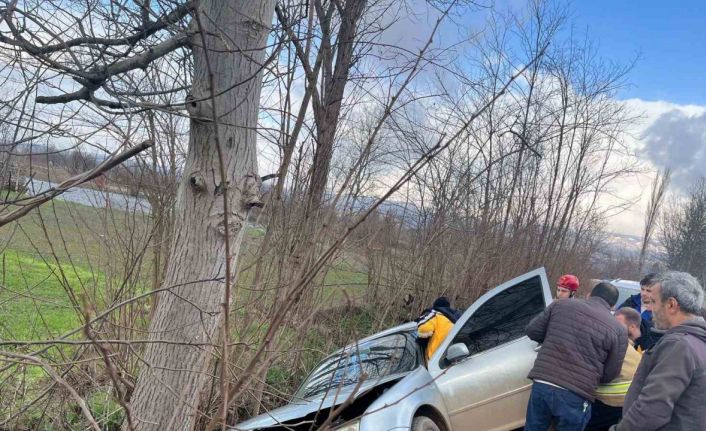 Bursa’nın İnegöl ilçesinde meydana gelen tek taraflı kazada, kontrolden çıkan otomobil ağaca çarptı.