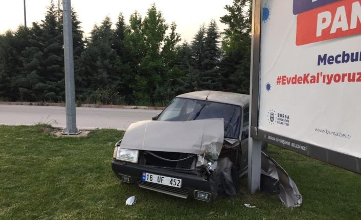 Edinilen bilgilere göre, Alanyurt-İnegöl yolu Özdilek kavşağında Cengiz Oktay A. (47) idaresindeki 16 UF 452 plakalı otomobil, sürücüsünün direksiyon hakimiyetini kaybetmesi sonucu yoldan çıkarak reklam panosuna çarptı. Hurdaya dönen otomobilih sürücüsü Cengiz Oktay A. ile araçta bulunan Zeliha A. yaralandı. Haber verilmesi üzerine olay yerine gelen 112 ekipleri yaralılara ilk müdahaleyi olay yerinde yaparak İnegöl Devlet Hastanesi kaldırdı. Yaralıların sağlık durumlarının iyi olduğu öğrenilirken kazayla alakalı soruşturma başlatıldı.