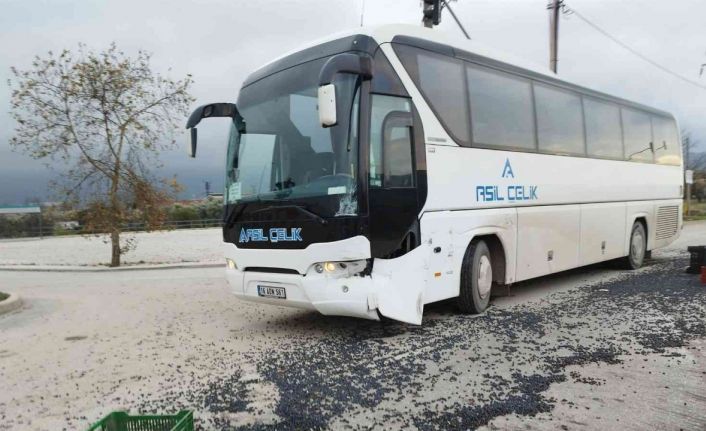 Bursa’da bir buçuk ton zeytin bulunan kamyonet ile servis otobüsü çarpıştı. Kazada yaklaşık bir buçuk ton zeytin yola saçıldı.