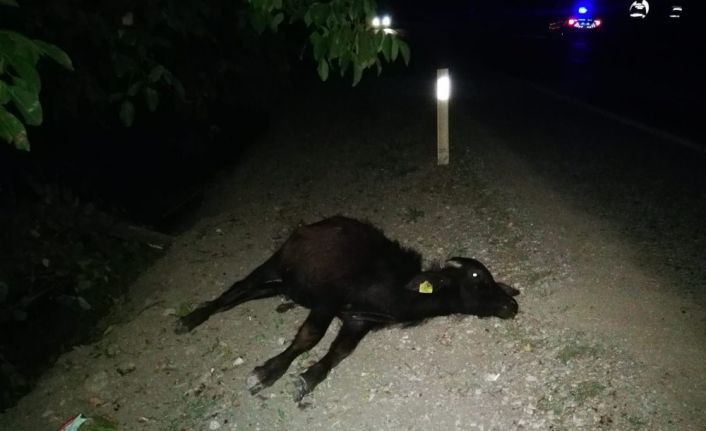 Bursa’da köpeklerden ürküp karayoluna kaçan manda ve iki yavrusuna kamyon çarptı. Kazada anne manda ve bir yavrusu telef oldu. Diğer yavru mandanın ise ayakları kırıldı.