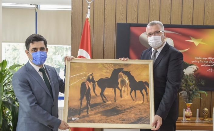 Ziyaret sonrası Başkan Özkan, 2. Bölge Müdürü Adil Şencan’a Karacabey Harasında çekilmiş bir fotoğraf hediye etti.