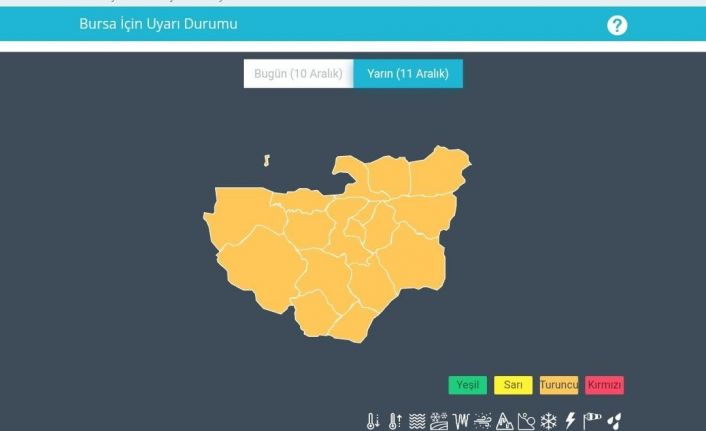 Meteoroloji Genel Müdürlüğü Bursa için sarı uyarıda bulunuldu.