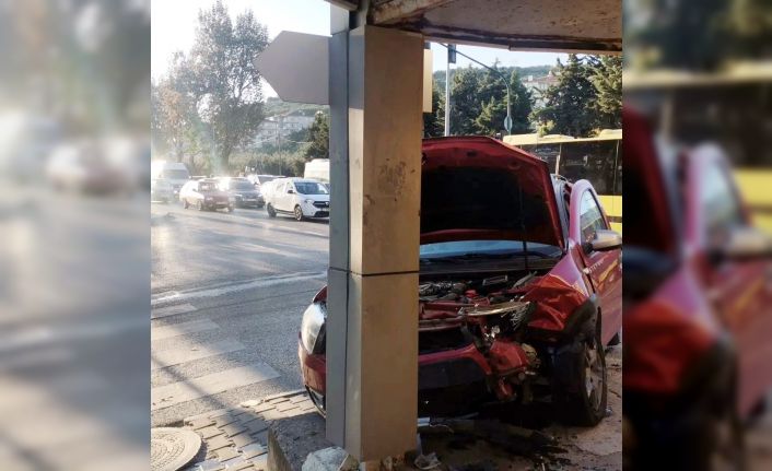 Bursa Mudanya istikametine doğru ilerleyen 35 GE 5671 plakalı araç, yan kavşaktan çıkan 16 GF 967 plakalı araca çarptı. Çarpmanın şiddetiyle yaya üst geçidi merdivenlerine çarparak durabilen araçta, hava yastığının açılması faciayı önledi.