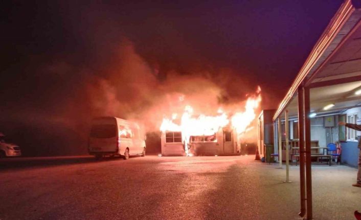 Mudanya Yumurtatepe mevkiinde bulunan minibüs duraklarında yangın çıktı. Bitişik haldeki iki adet mobo minibüs durağı alevlere teslim olurken, yangın bir minibüse de sıçradı. Yakındaki farklı bir konteyner ise kısmen yandı.