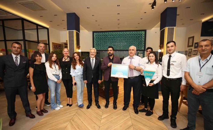 Yaklaşık 4 bin gıda işletmesi olan Nilüfer ilçesinde Nilüfer Belediyesi’nin, özellikle hijyen konusunda standartlar üzeri hizmet veren iş yerlerinin bilinirliğini artırmak ve bu konuda farkındalık oluşturmak üzere tescillediği örnek iş yerleri ağına bir yenisi daha eklendi. Nilüfer Belediye Başkanı Turgay Erdem, denetimler sonucu belge alamaya hak kazanan bir restoranı ziyaret ederek işletme sahibi Şükrü Zeren’e örnek iş yeri belgesi ve flamasını teslim etti.