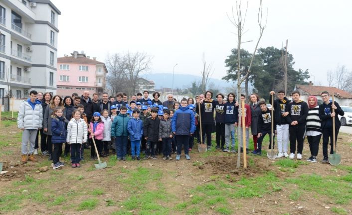 Öğrenciler fidanları dikerken Nilüfer Belediyesi Park ve Bahçeler Müdürlüğü ekipleri de onlara hem yardım etti hem de fidanların bakımları hakkında bilgi verdi.
