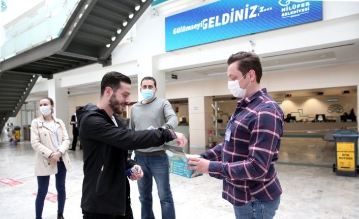 Salgının gündeme gelmesiyle birlikte bütün pazar yerlerinde maske dağıtmaya başlayan Nilüfer Belediyesi, maske üretimine başladıktan sonra bu dağıtımı genişletti. Nilüfer Belediyesi Halk Evi’nde üretilen maskeler, mahalle sakinlerine dağıtılmak üzere muhtarlıklara veriliyor. Ayrıca ihtiyacı olan vatandaşlar Nilüfer Belediyesi’nin bütün hizmet binalarındaki danışma görevlilerinden yine ihtiyaçları kadar maske alabiliyor. Maske alınabilecek Nilüfer Belediyesi hizmet binaları şöyle: Halk Evi, Alaaddinbey Ek Hizmet Binası, Nâzım Hikmet Kültürevi, Yüzüncüyıl Eğitim ve Sanat Merkezi, Konak Kültürevi, Bizim Bahçe, Bizim Ev Engelliler Sosyal Yaşam Destek Merkezi, Nilüfer Dernekler Yerleşkesi, İbrahim Yazıcı Stadyumu, Konak Olimpik Yüzme Havuzu, Üçevler Spor Tesisleri, Karaman Dernekler Yerleşkesi, Altınşehir Gençlik Merkezi, Nikahevi, İlçe Afet ve Acil Durum Merkezi, Balat Atatürk Ormanı ve Nilüfer Kent Konseyi.