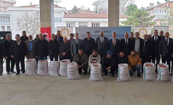 Orhaneli ilçesinde üreticilere sertifikalı buğday ve arpa tohumu dağıtıldı.