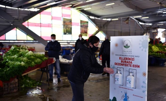 Osmangazi Belediye Başkanı Mustafa Dündar da ilçedeki tüm pazar yerlerine el dezenfektanı aparatı koyduklarını ifade ederek, “Halkımızın pazar yerine giriş ve çıkışında ellerini temizlemesini sağlıyoruz. Bilindiği gibi virüs temas yoluyla da geçiyor. Pazar yerinde de el teması oldukça fazla. Bu nedenle halkımızın ellerini titiz bir şekilde dezenfekte etmesini istiyoruz” şeklinde konuştu.