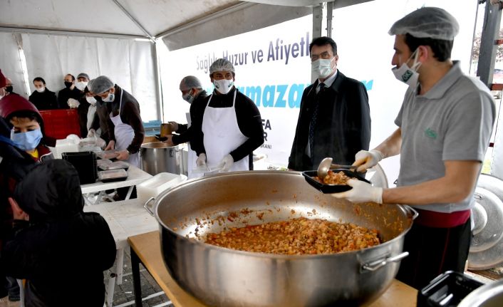 Osmangazi Belediyesi, ramazan ayı boyunca her gün 5 farklı noktada vatandaşlara sıcak yemek dağıtıyor. Pandemi nedeniyle yemekleri paket olarak, yada vatandaşların getirdikleri kaplara koyarak dağıttıklarını söyleyen Başkan Mustafa Dündar, “Osmangazi’de sofralar ayrı, gönüller bir” dedi.