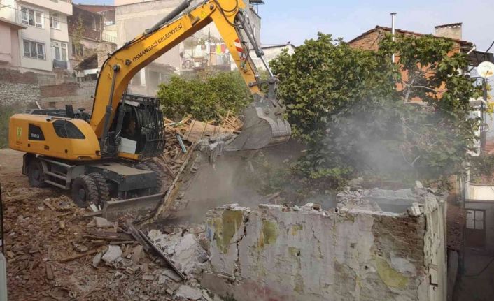 Osmangazi Belediyesi, vatandaşların can güvenliğini tehdit etmesinin yanı sıra sosyal riskler oluşturan ve kent estetiğini bozan metruk binaları yıkmaya devam ediyor. Madde bağımlıları tarafından mesken tutulduğu belirlenen Pınarbaşı Mahallesi’ndeki iki katlı metruk bina yıkıldı.