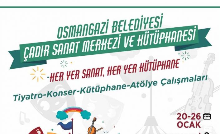 Osmangazi Belediyesi, 20-26 Ocak tarihleri arasında Yunuseli Pazar Alanı’nda ve 27 Ocak-02 Şubat tarihleri arasında Altınova Spor Tesisleri’nde kuracağı Çadır Sanat Merkezi ve Kütüphanesi ile çocuklara eğlenceli vakit geçirebilecekleri dopdolu bir ‘Yarıyıl Şenliği’ sunacak. 2024-2025 eğitim öğretim yılının ilk yarısının tamamlanmasıyla birlikte karnelerini alan Osmangazili öğrenciler, soluğu Osmangazi Belediyesi’nin kendileri için hazırladığı Çadır Sanat Merkezi ve Kütüphanesi’nde alacak. Tiyatro oyunları, masal anlatımı, atölye çalışmaları ve konserler gibi her gün ayrı bir programın yer aldığı Çadır Sanat Merkezi ve Kütüphanesi’ne giden Osmangazili çocuklar, hem eğlenecek hem de kültür sanat dolu bir hafta geçirecek.