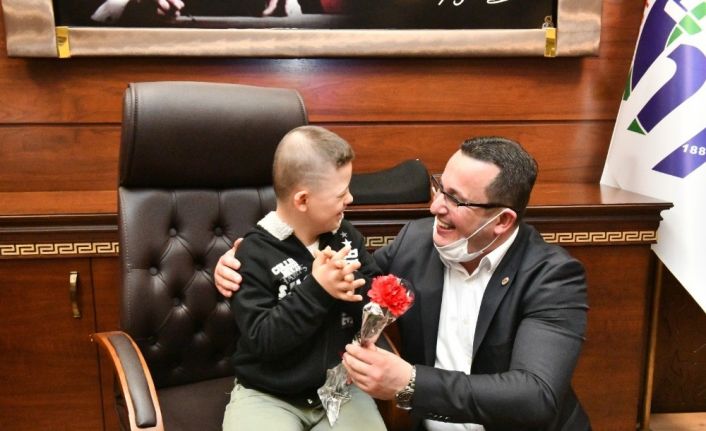 Belediye Başkanı Mehmet Kanar, 21 Mart Dünya Down Sendromu Farkındalık Günü dolayısıyla koltuğunu kendisini ziyaret eden özel çocuklar bıraktı. Sırayla başkan olan çocukların mutluluğu ise gözlerinden okundu.