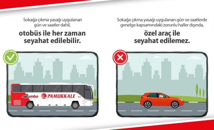 Genelge hakkında bilgilendirme yapan Pamukkale Turizm, İçişleri Bakanlığı’nın yayınladığı genelgeye göre hafta içi ve hafta sonu uygulanan sokağa çıkma yasağından otobüs yolcularının etkilenmediğini belirterek, "Sokağa çıkma yasağı uygulanan gün ve saatler dahil, otobüs ile her zaman seyahat edilebilir. Yolcuların otogara gelişlerde yetkililere ibraz edebilmek için biletlerinin çıktısını ya da SMS görüntüsünü yanlarında bulundurmaları yeterli olacaktır" duyurusunda bulundu.