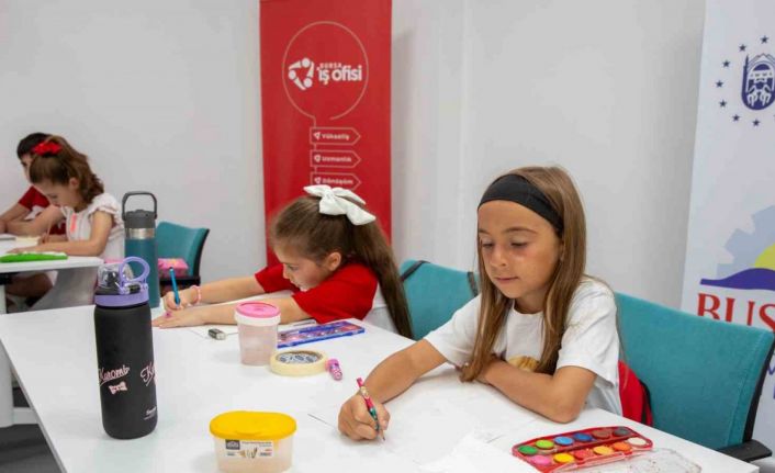 Bursa’nın 14 ilçesindeki 25 farklı mekanda faaliyet yürüten ve bugüne kadar 540 branşta eğitimler veren Büyükşehir Belediyesi bünyesindeki BUSMEK, her yaştan Bursalının sanatsal yeteneklerini geliştirmesi ve verimli vakit geçirebilmesi için birbirinden renkli atölyeler düzenliyor. Büyükşehir Belediyesi İnsan Kaynakları ve Eğitim Dairesi Başkanlığı İş ve Meslek Edindirme Şube Müdürlüğü tarafından hazırlanan ‘Renklerin Suyla Dansı’ temalı sulu boya atölyesine, 8-12 yaş arasındaki çocuklar büyük ilgi gösterdi. Sulu boyayla hayallerini kağıtlara yansıtan çocuklar, gün boyunca hem eğlendi hem de öğrendi. Atölyeye katılan çocuklar birbirinden farklı ve renkli eserler ortaya çıkararak özgüvenlerini pekiştirirken, sosyal becerilerini geliştirme ve yeni arkadaşlıklar kurma imkanı da buldu. Bu tür atölye çalışmalarının çocukların gelişimine büyük katkı sağladığını belirten veliler, Büyükşehir Belediye Başkanı Mustafa Bozbey’e teşekkür etti.