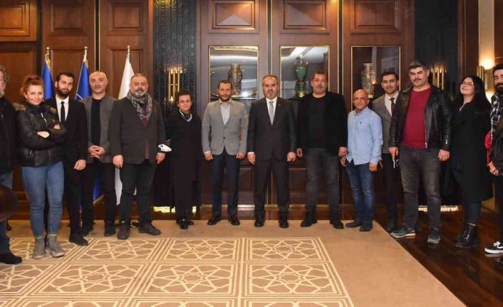Güney Marmara Tiyatro Kooperatifi Başkanı Mustafa Yıldırım ve ‘Birnefestival’ programına katılarak sanatlarını icra etme imkanı bulan sanatçılar, teşekkür etmek hedefiyle Bursa Büyükşehir Belediye Başkanı Alinur Aktaş’ı ziyaret etti. Salgının bir çok sektörü etkilediğini ancak konser ve sahne etkinliklerinin adeta durması sebebiyle yerel sanatçıların ekonomik dar boğaza girdiğini hatırlatan Güney Marmara Tiyatro Kooperatifi Başkanı Mustafa Yıldırım, “Böyle bir süreçte Bursa Büyükşehir Belediyesi imdadımıza yetişti. O sıkıntılı süreçte sanatçı arkadaşlarımız sanatlarını icra edip, rahat bir nefes aldı. Sanata ve sanatçıya sağladıkları destekler sebebiyle Büyükşehir Belediye Başkanı Alinur Aktaş’a projeye katılan tüm sanatçılar adına teşekkür ediyorum” dedi.