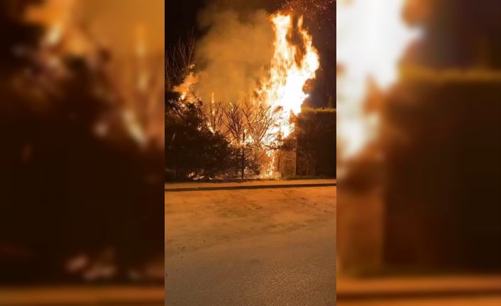 Yangın saat 21.00 sıralarında Mahmudiye Mahallesi’ndeki Botanik Park’ta meydana geldi. İddiaya göre parkta bulunan ağaç, kimliği henüz belirlenemeyen kişi ya da kişiler tarafından ateşe verildi. Rüzgarın da etkisiyle kısa sürede büyüyen alevler parkta paniğe neden oldu.
