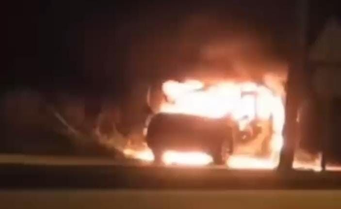 Seyir halindeyken alev alan otomobil kullanılmaz hale geldi