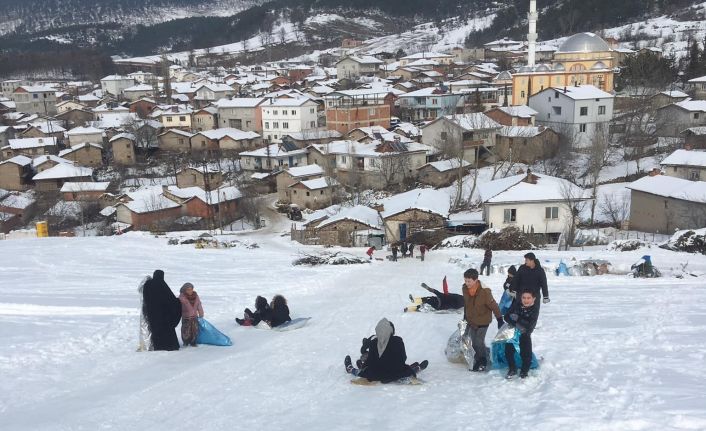 Bursa’nın dağ ilçesi Büyükorhan‘da karın keyfini, çocuklar tahta kızak ve naylonla çıkardı.