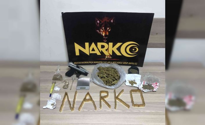 Mustafakemalpaşa Emniyet Müdürlüğü Narkotik Suçlarla Mücadele Grup Amirliği, Bursa Narkotik Suçlarla Mücadele Şube Müdürlüğü ve Çevik Kuvvet destekli yapılan operasyonda uyuşturucu satıcılarının ikametlerine şok baskın düzenlendi. K-9 narkotik köpeklerinin de kullanıldığı gece operasyonunda, satışa hazır yüklü miktarda kimyasal uyuşturucu madde ele geçirilirken, şüpheliler C.A. (30), Ş.T. (35), M.Ü. (41) ve H.Ö. (43) yakalanarak gözaltına alındı. Emniyette yapılan sorgulamanın ardından adliyeye sevk edilen zanlılardan biri tutuklanırken, diğerleri serbest bırakıldı.