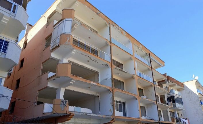 Tehlike saçan binadan parça parça betonların döküldüğü gözlemlenirken, bunun da can güvenliği için tehdit oluşturduğu ifade edildi.