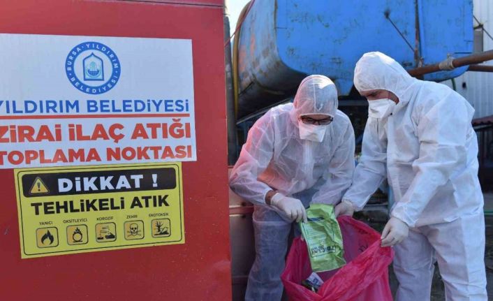 Yıldırım Belediyesi, ilçenin 4 noktasına yerleştirdiği zirai ilaç ambalajları toplama konteynerlerinden toplanılan zirai atıkları ilgili lisans firmasına göndererek imha ediyor.