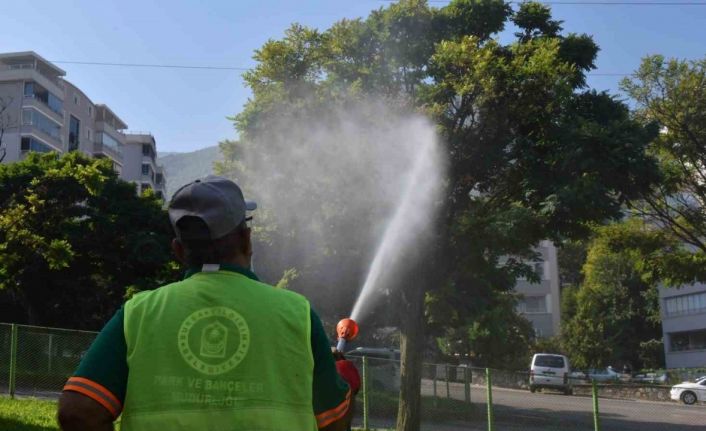 Bursa’da Yıldırım Belediyesi, ilçeye kazandırılan yeşil alan ve parklarda ağaç, bitki ve çimlerdeki zararlılara karşı ilaçlama çalışması gerçekleştiriyor.