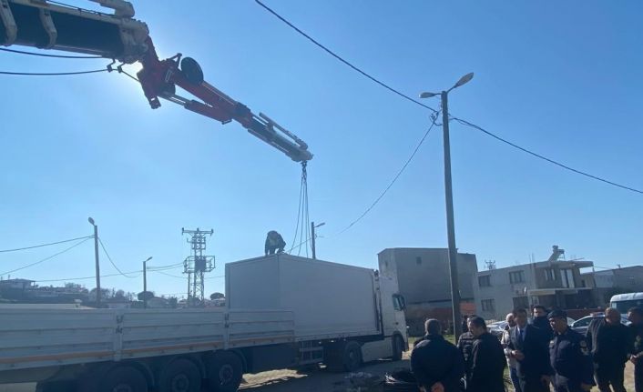 Çanakkale’nin Ayvacık ilçesi depreminde kurulan konteyner evler, Kahramanmaraş merkezli meydana gelen deprem bölgesine destek olması için yola çıkarıldı.