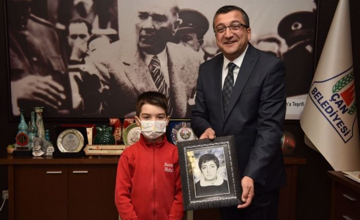 Okul Müdürü Turhan Çokgezer ve öğretmeni İsmail Demir ile Çan Belediyesi’ne gelen küçük öğrenci Çan Belediye Başkanı Bülent Öz’ün ilkokul 1 sınıftaki siyah beyaz fotoğrafını Başkan Öz’e hediye etti. Daha sonra koltuğa oturan küçük öğrenci birim müdürlerini çağırarak okulda eksik gördüğü malzemeleri tamamlama talimatı verdi. Başkan Öz, “Büyük Önder Mustafa Kemal Atatürk’ün çocuklara armağan ettiği "23 Nisan Ulusal Egemenlik ve Çocuk Bayramı" kutlamaları çerçevesinde, hayallerinin peşinden giden Hamza Yaşar evladımız, bugün makam koltuğundaydı. Talepleri, soruları ve hayalleri ile günümüze renk, yüzümüze sevinç katan evladımız, gelecek nesillere ilkokula olan güvenimizi de tazeliyor adeta ilkokul sıralarında çekilmiş anlamlı bir fotoğrafımı hediye eden ve beni o günlere götüren, Atatürk İlkokulu Müdürü Turhan Çokgezer ve 2/B sınıf öğretmeni İsmail Demir’e çok teşekkür ediyorum. Bugünün çocukları yarının geleceği olacak küçük öğrencimizin taleplerini arkadaşlarımız aldı. En Kısa zamanda öğrencimizin taleplerini yerine getireceğiz. Bugünü hatıra kılacak, yarın için bizleri gururlandıracak çocuklarımızın 23 Nisan Ulusal Egemenlik ve Çocuk Bayramı kutlu olsun” dedi.