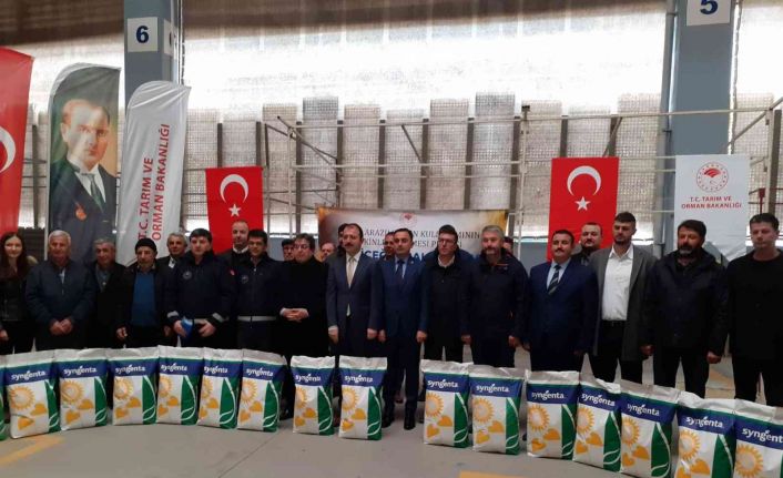 Konuşmaların ardından üreticilere ayçiçeği tohumları dağıtıldı.