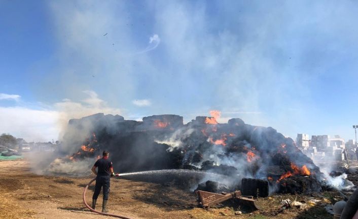 Çanakkale’nin Çan ilçesine bağlı Etili köyünde çıkan yangında 90 ton saman balyası tamamen yandı.