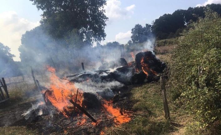 Çanakkale’nin Çan ilçesinde tarlada bulunan 45 adet saman balyası yandı.
