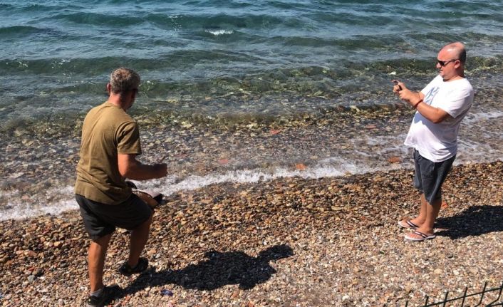 Olay bugün 16.00 sıralarında Çanakkale Deniz Müzesi’nin yanında bulunan bir çay bahçesi önünde meydana geldi. Denize sıfır olan çay bahçesi önüne gelen bir amatör balıkçı oltasını çıkararak balık tutmaya başladı. Bir süredir burada bekleyen kişinin oltasına vatos cinsi köpek balığı takıldı. İlk önce tedirgin olan vatandaş, şaşkınlığını attıktan sonra köpek balığını oltadan kurtararak tekrar Çanakkale Boğazı’nın serin sularına bıraktı.