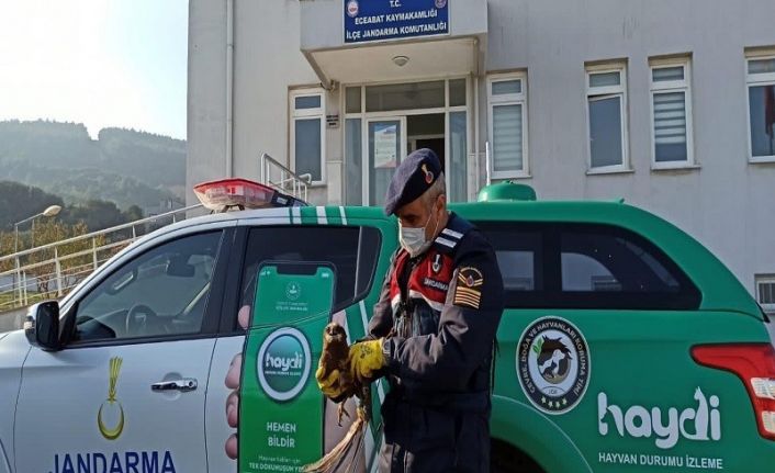Çanakkale’de kanatları kırık halde bulunan kızıl şahine jandarma ekipleri sahip çıktı.
