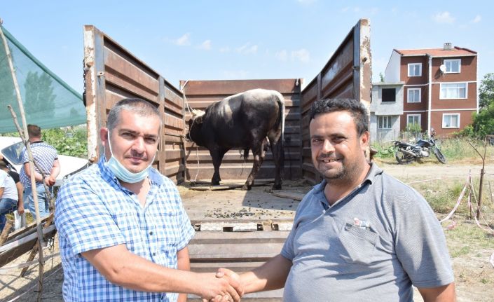 Çanakkale’nin Lapseki ilçesinde meyve toplama merkezi arkasında yer alan boş araziye kurbanlık büyük ve küçükbaş hayvan pazarı kuruldu. Arife gününde küçükbaş hayvan fiyatları bin lira ile 2 bin 500 lira arasında alıcı beklerken büyükbaş hayvan fiyatları 10 bin ile 15 bin lira arasında değişiyor. Vatandaşlar kurbanlıklarını alıp araçlara yüklerken bazıları da bayram gününü bekleyerek daha ucuza alabilmek için sıkı pazarlık yapmayı planlıyor.