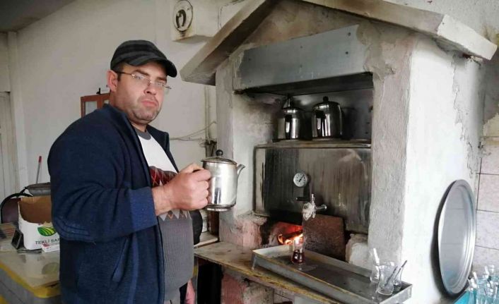 Çanakkale’nin Biga ilçesine bağlı Bahçeli köyünde köy kahvehanesi işleten Birol Cambaz, çay kazanında odun ateşi kullanmaya başladı.